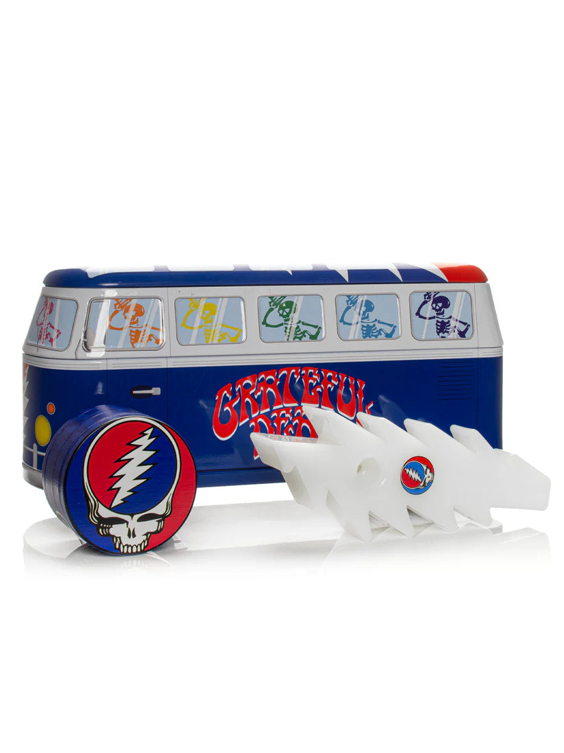 This Grateful Dead x GEAR Premium® release marks one of those moments. Featuring a 6" Lightning Bolt Hand Pipe and a 63mm Steal Your Face Grinder, housed in a collectible Grateful Dead Bus tin, ready to be stickered and loved with the included pack of trippy Grateful Dead bumper stickers.