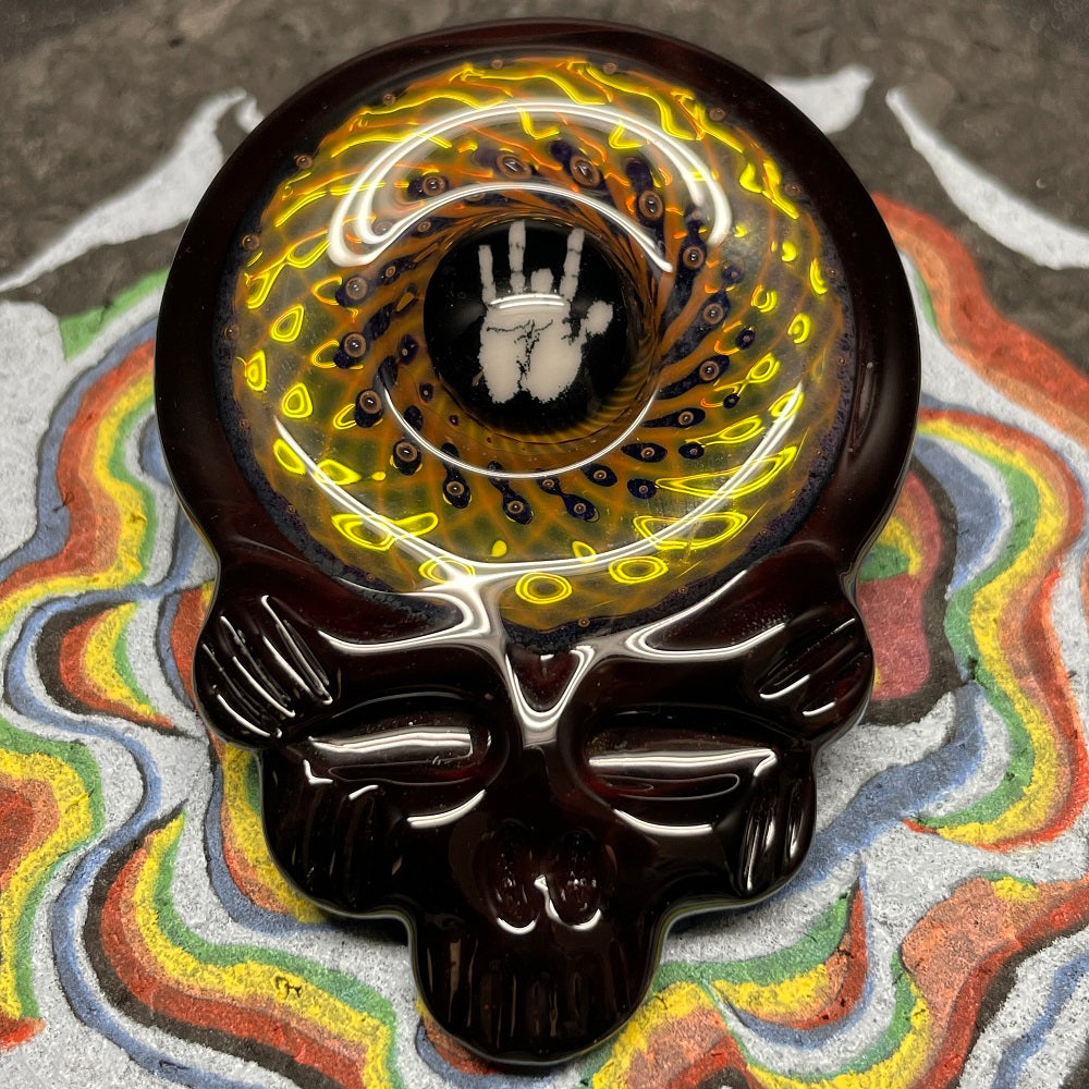 Grateful Dead Skull with Jerry Garica Hand Millie Glass Pendant by @paulietwofingers
